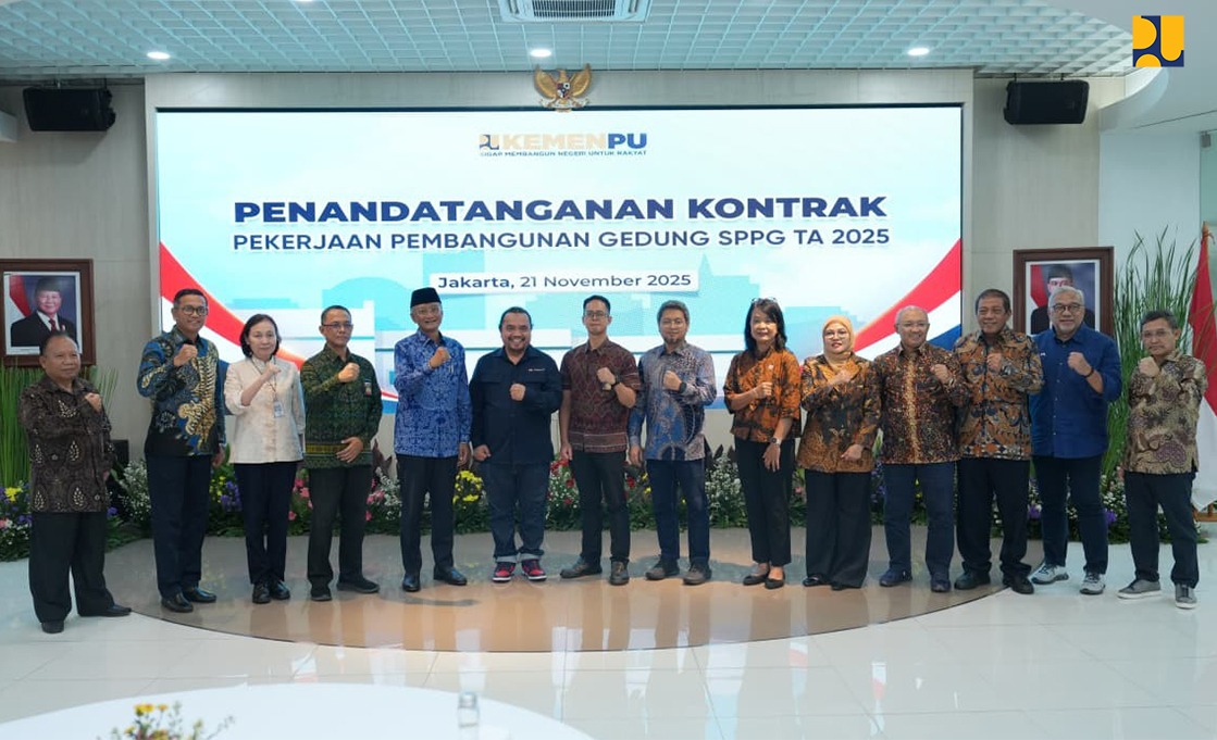 Jakarta — Kementerian Pekerjaan Umum memastikan seluruh pembangunan Gedung SPPG Tahun 2025 menggunakan standar desain prototipe sesuai Keputusan Menteri PU Nomor 628/KPTS/M/2025. Hal itu ditegaskan Direktur Jenderal Prasarana Strategis Bisma Staniarto dalam acara penandatanganan kontrak pembangunan SPPG, Jumat (21/11/2025).