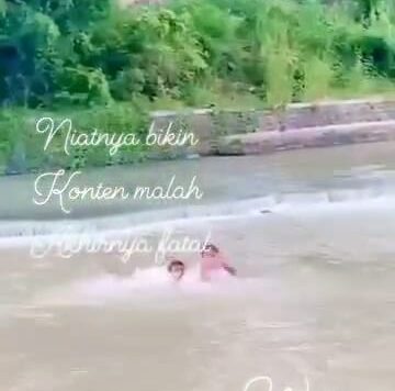 Kedua remaja tersebut sebelumnya terlihat sedang membuat konten video di salah satu jembatan di desa tersebut.