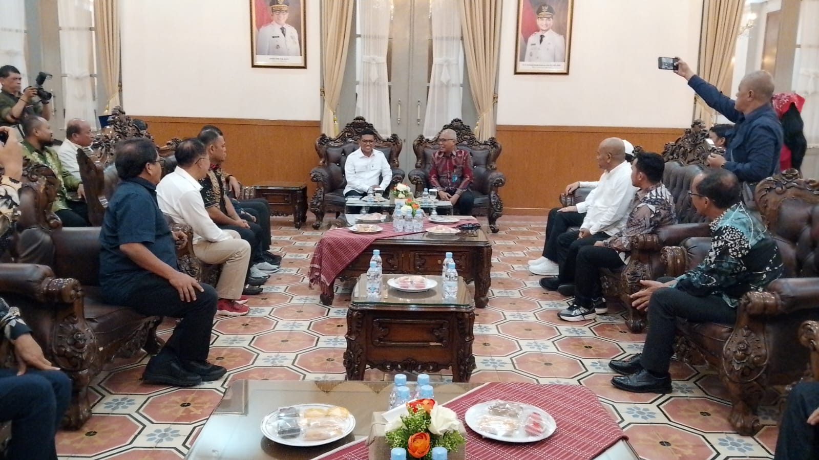 “Alhamdulillah, hari ini saya mendapat tamu kehormatan dari PWI Pusat. Setelah beberapa tahun, akhirnya PWI bisa kembali bersatu. Ke depan, saya tidak lagi bingung menerima audiensi karena PWI sudah bersatu. Kami siap berdiskusi dan berkolaborasi untuk mendukung aktivitas masing-masing,” ujar Gubernur.