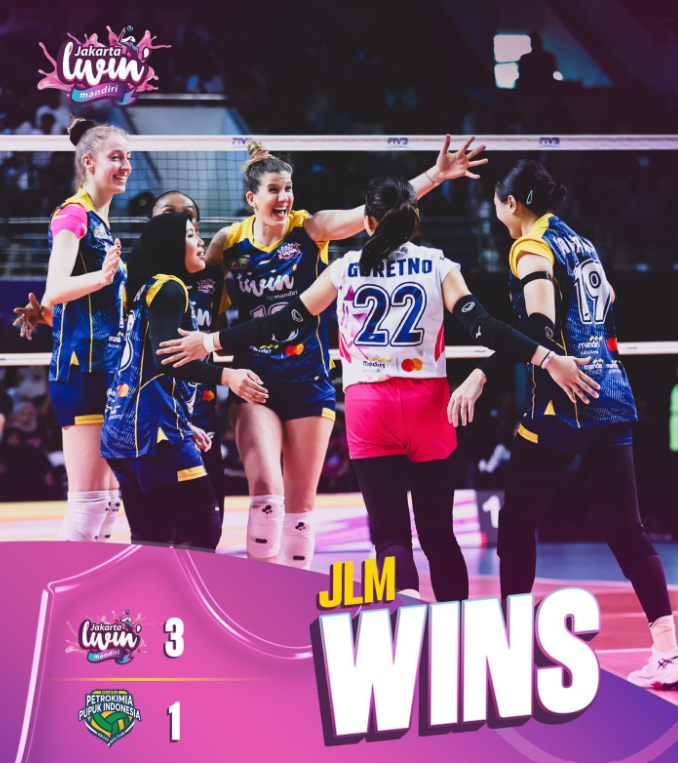 vonisinvestigasi.id — Tim voli putri Jakarta Livin’ Mandiri kembali menunjukkan performa solid dengan menumbangkan Gresik Phonska Plus 3-1 (25-17, 25-22, 22-25, 25-20) pada lanjutan Proliga 2026, Minggu, 8 Februari 2026, di GOR Ken Arok, Malang.