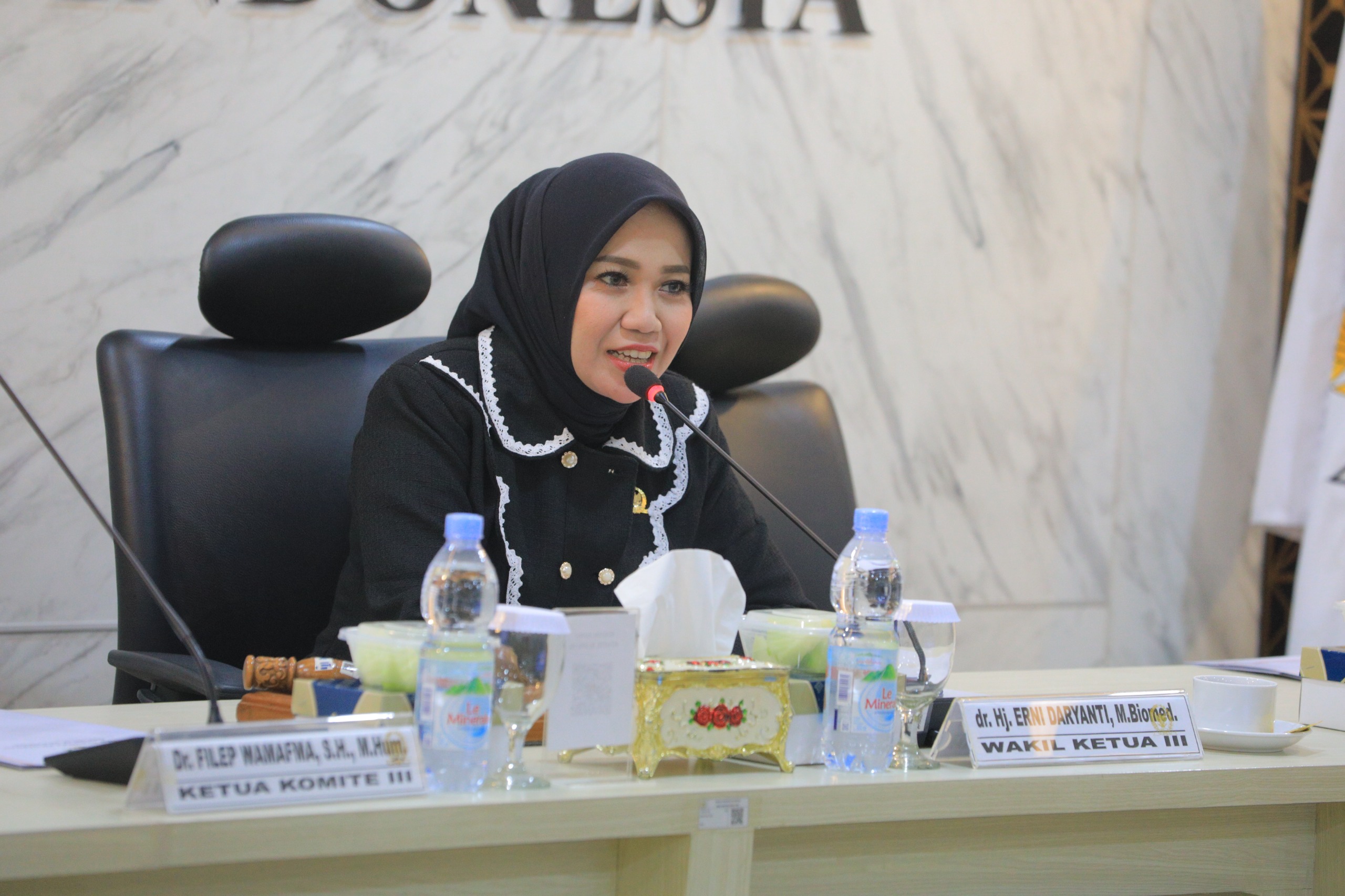 Wakil Ketua Komite III DPD RI Erni Daryanti mengungkapkan, berdasarkan hasil pengawasan Komite III DPD RI Tahun 2025, penerapan sistem delapan syarikah penyedia layanan haji dinilai belum efektif karena tidak didukung kajian teknis yang matang.