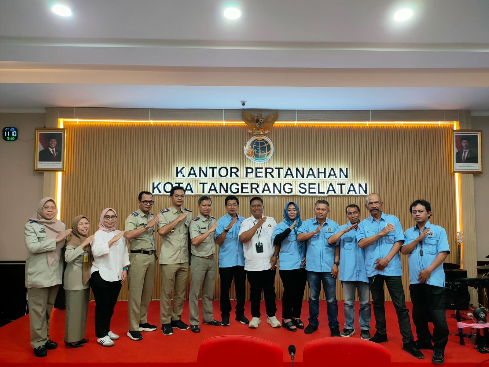 Dihadiri Ketua PWI Kota Tangsel Edy Riyadi, Wakil Ketua Sugiarto serta jajaran pengurus lainnya. Dari BPN hadir Kasubag TU Triaz Akbar W, Kasi Sengketa, Kasi P2, dan staf.