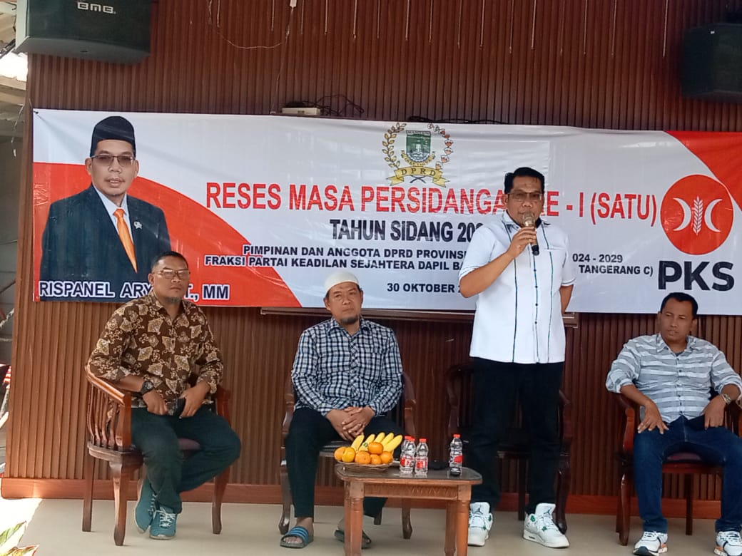 Tangerang — Anggota DPRD Provinsi Banten dari Fraksi Partai Keadilan Sejahtera (PKS), Rispanel Arya, ST., MM., menggelar kegiatan reses masa persidangan ke-I tahun 2025–2026 bersama masyarakat di Saung Sahara, Perumahan Binong Permai, Kelurahan Binong, Kecamatan Curug, Kabupaten Tangerang, pada Kamis (30/10/2025).