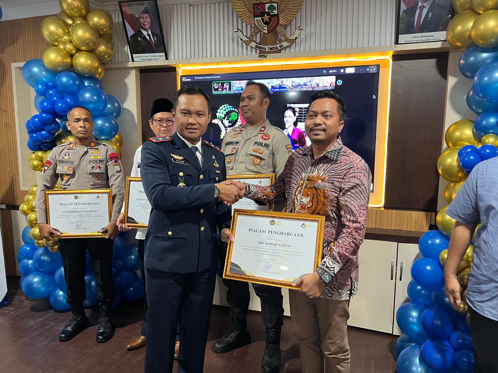 Sebagai bentuk penghargaan atas sinergi dan kolaborasi yang telah terjalin, Rutan Batam menyerahkan piagam ucapan terima kasih kepada para mitra kerja, antara lain Satuan Brimob Polda Kepulauan Riau, Polsek Sagulung, LBH Mawar Saron, LBH Peduli dan Harapan Bangsa, LBH Suara Keadilan, serta Kementerian Agama Kota Batam.