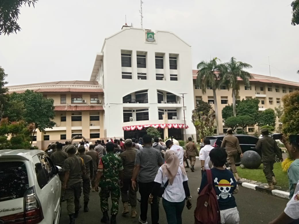 Longmarch berlanjut ke area pemkot Tangerang, mendesak pemerintah untuk segera mengevaluasi kinerja Satpol PP dan Dinas lainnya untuk perbaikan mutu sebagai abdi warga Kota Tangerang.