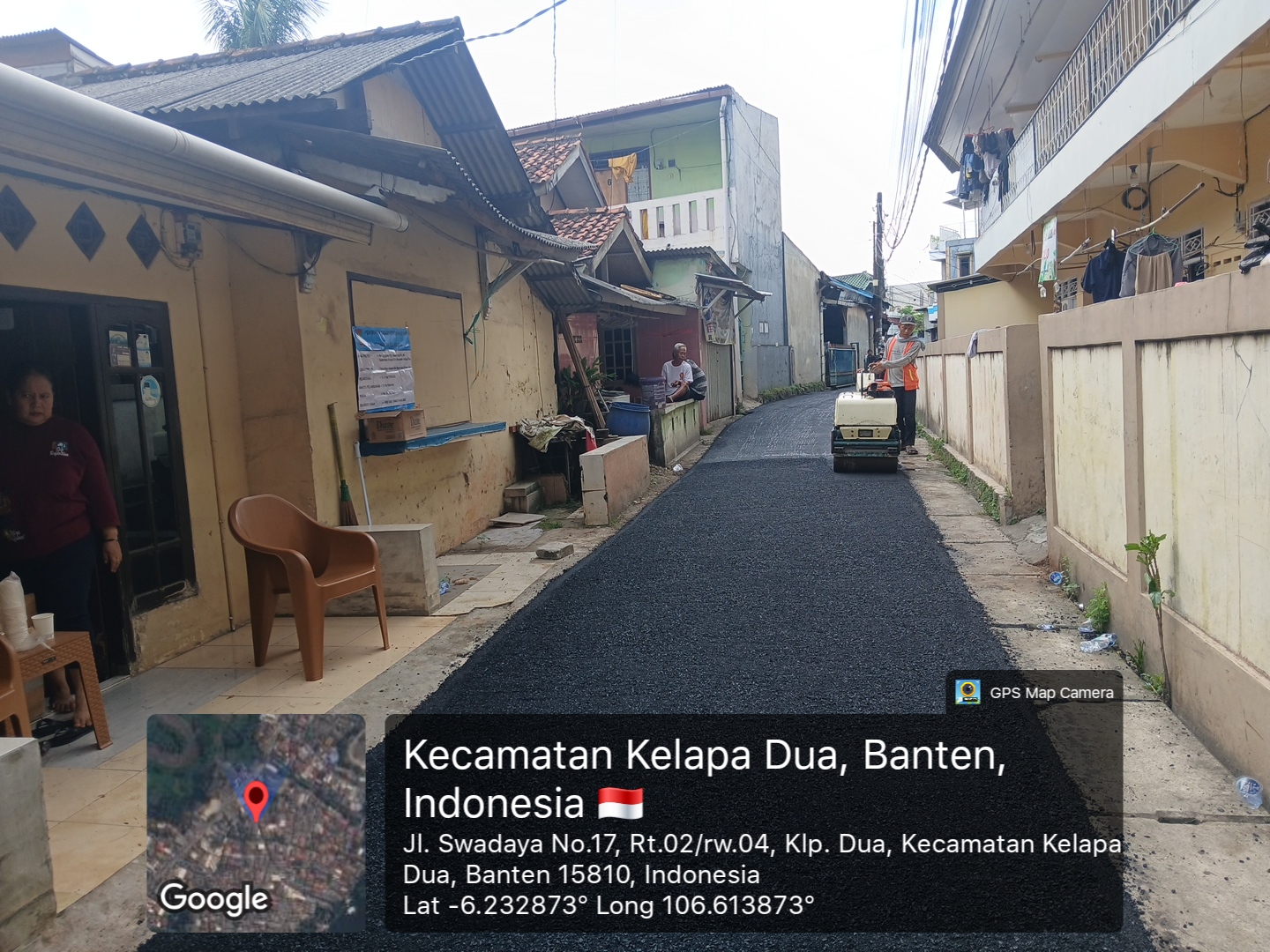 Tangerang,vonisinvestigasi.id – Warga Kelurahan Kelapa Dua, Kabupaten Tangerang, menyambut baik program lanjutan peningkatan jalan hotmix di Jl. Swadaya RT 02/RW 04